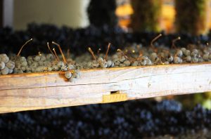 After harvest, the carefully selected bunches of fresh grapes, picked at optimal ripeness, are laid on drying racks in special-purposed lofts for a period of approximately three months. Optimal aeration and humidity allow the grapes to dry gradually and without rotting. During the drying process, the berries lose water content while all its other components – sugar, tannins, flavour compounds – are concentrated. Specific biochemical reactions also take place, transforming some of the existing molecules and creating unique compounds that will ultimately impact on flavour and texture.