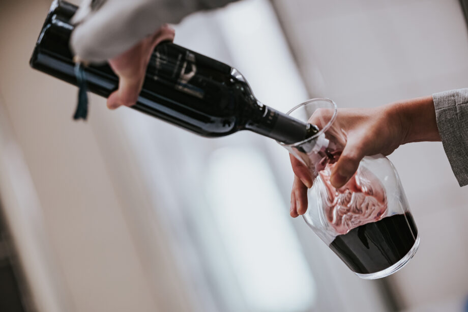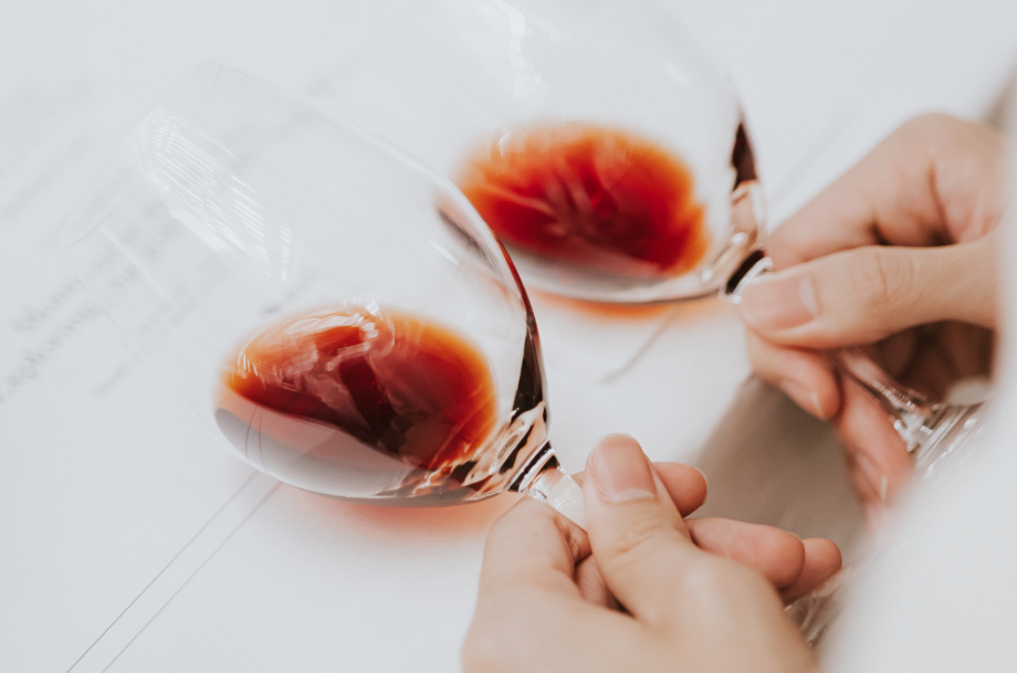 Leaning in, a guest studies the wines side by side, tracing the subtle colour differences in the glass.